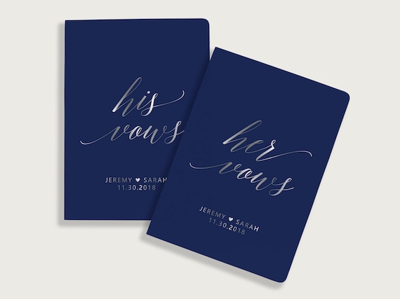 Navy Vow Book Silver Foil Vow Booklets His Vows Her Vows Set Of 2 Books Vb023