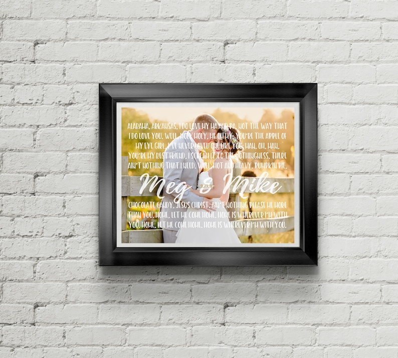 Custom Printable Wedding Song Lyrics Wedding Vows Digital Art Print With Romantic Font Straight Bold Writing With Names Wedding Date