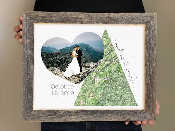 Framed Wedding Picture With Custom Map Location Paper Anniversary Gift For Him First Anniversary Vow Renewal Gift Framed Picture Map