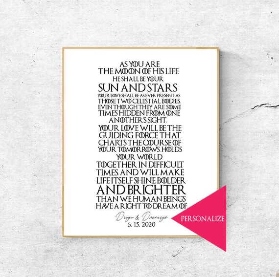 Moon Of My Life Sun And Stars Dothraki Wedding Vows Dothraki Quote Game Of Thrones Gift Game Of Thrones Printable Wedding Print