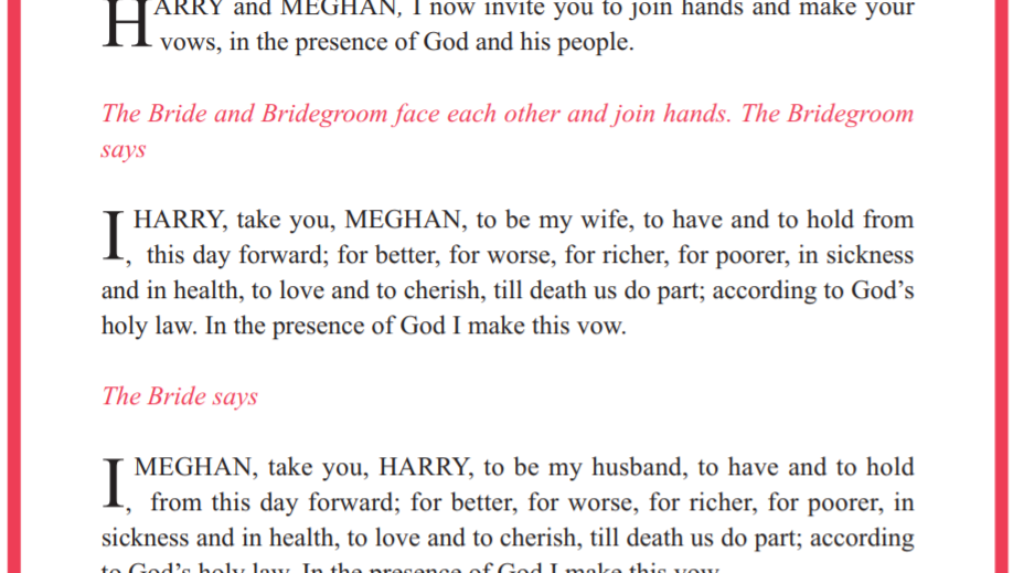 These Are The Royal Wedding Vows For Prince Harry And Meghan