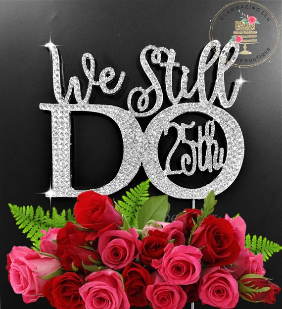 Silver Anniversary Or Wedding Vow Renewal C We Still Do 25th 50th Wedding Cake Topper Rhinestone Crystal Cake Pick