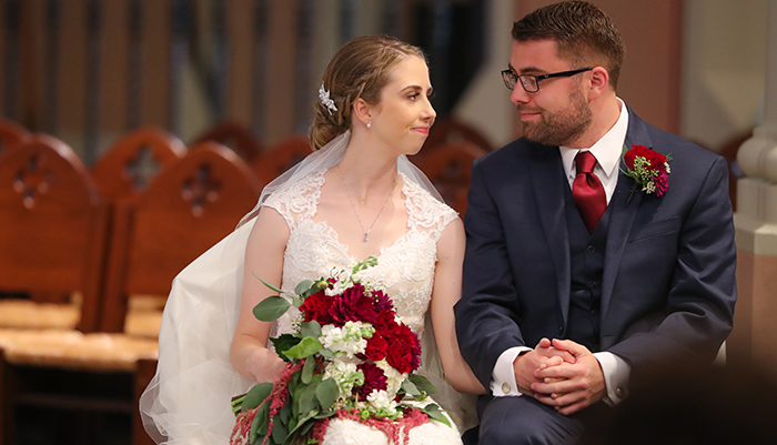 Sara And John Couple Exchange Wedding Vows During Evening Ceremony