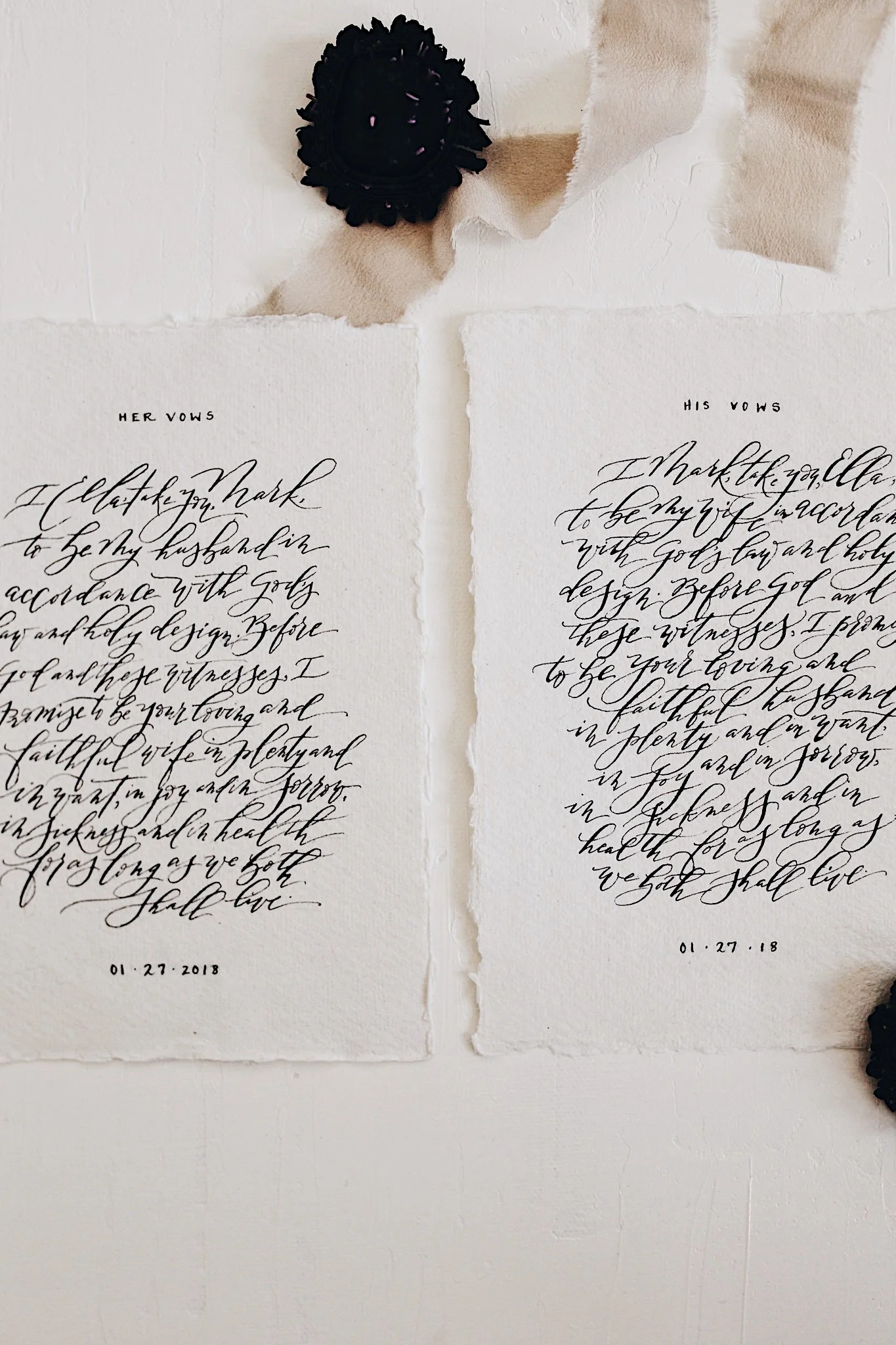 Calligraphy Wedding Vows Hand Lettered Wedding Vows Custom Vow Prints Wedding Vow Renewal Written Wedding Vows Calligraphy Wedding Song