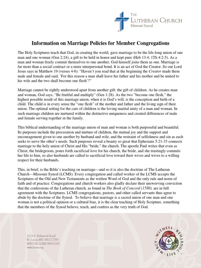 Wels wisconsin evangelical lutheran synod. A report of the commission on theology and church relations of the lutheran churchmissouri synod. A wedding sermon by dietrich bonhoeffer.
