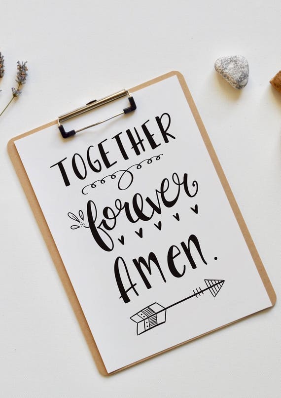 Together Forever Amen Wedding Vows Inspirational Quotes Mr And Mrs Print Handlettering Home Decor Christian Gifts
