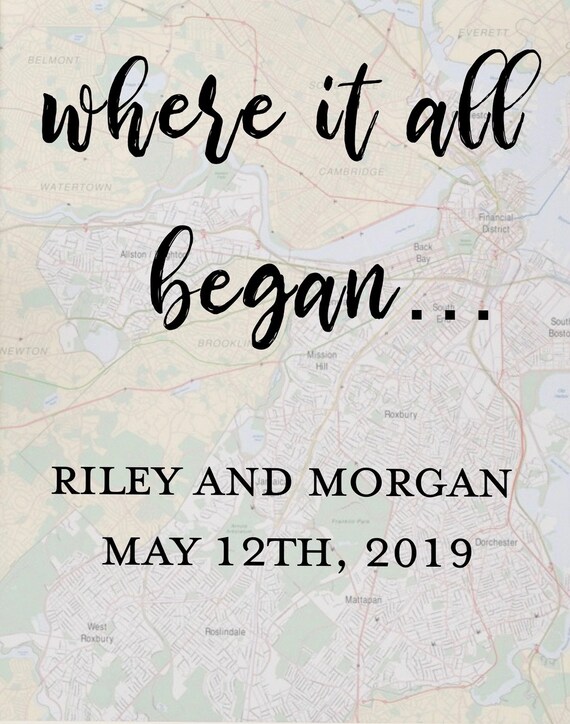 Where It All Began Wedding Gift Map Map Heart Engagement Gift Printed City Map With Couples Names And Meeting Date