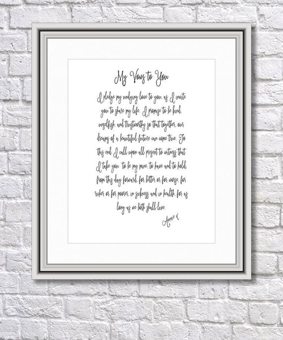Minimalist Wedding Vows Print Brides Vows Grooms Vow Wedding Gift Anniversary Gift Wedding Vows Gift Wedding Memento Print