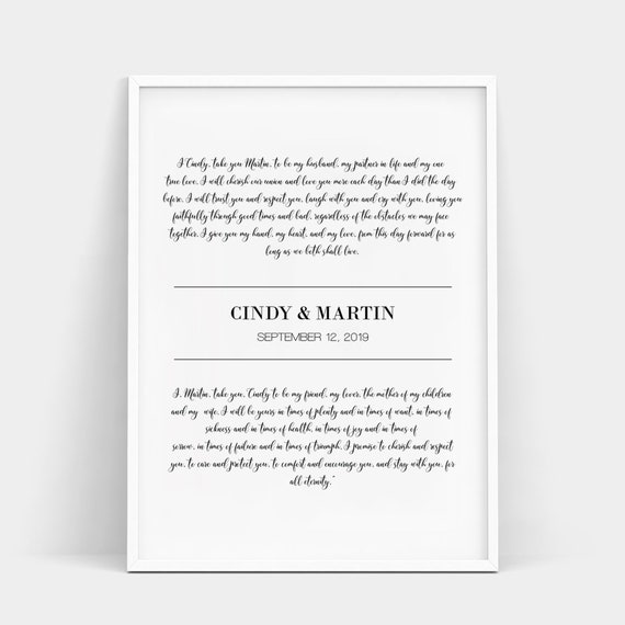 Personalized Wedding Vows Wedding Vow Print Wedding Vow Keepsake His And Her Vows 1st Year Anniversary Gift Personalized Wedding Gift