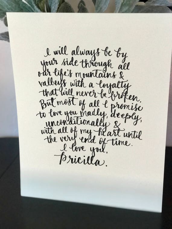 Vow Artwork Simple Modern Calligraphy Personalized Wedding Gift Anniversary Gift Custom Poem Holiday Gifts