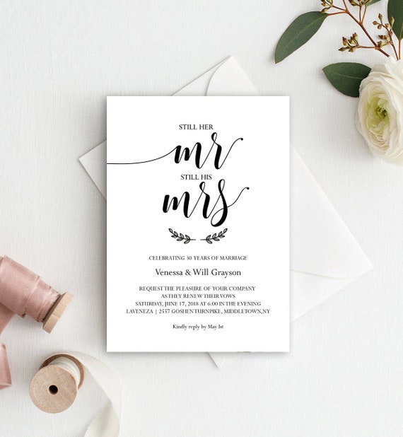 Vow Renewal Invitation Template Instant Download Wedding Anniversary Renew Vows Mr And Mrs 100 Editable Template Digital 034 108vr