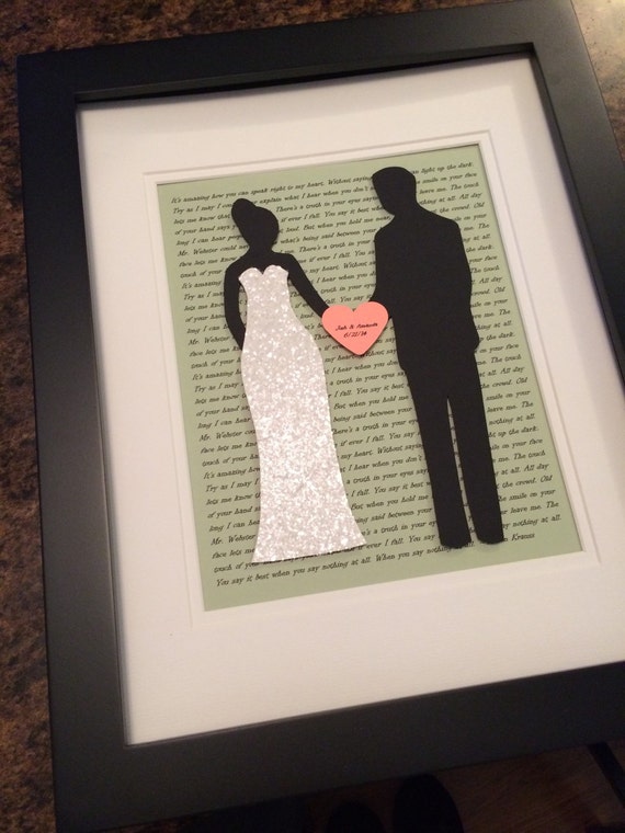 Bride And Groom Silhouette Wedding Vows Song Lyrics Engagement Gift Bridal Shower Gift Wedding Gift Gift For Newlyweds Couple Outline
